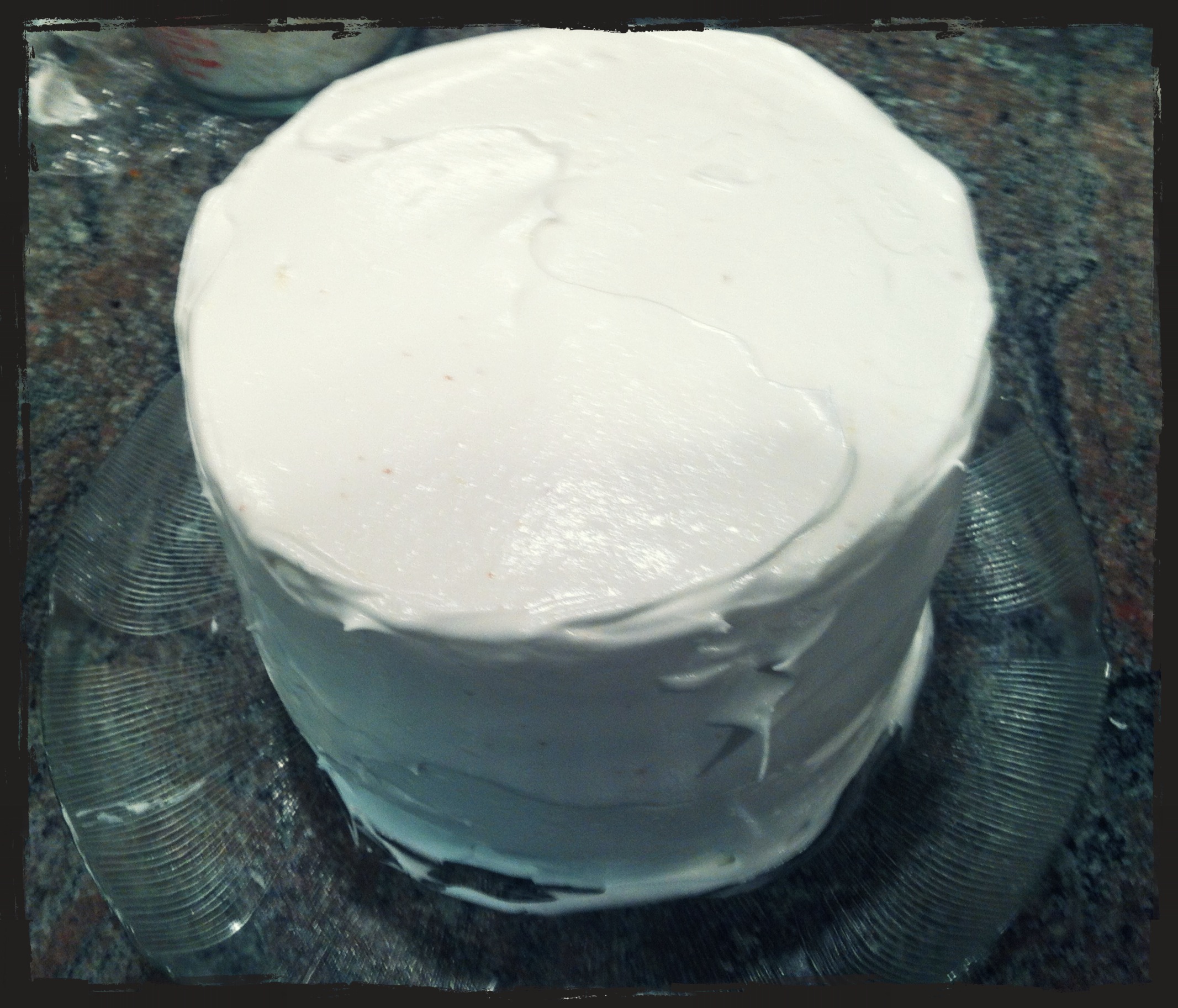 *Note it is very important to get the syrup up to this temperature and to use a candy thermometer. I didn’t the first time, following instead the time reference and my frosting turned out as a wet, runny slop. Had to start again. Use a candy thermometer to guide your temperature!