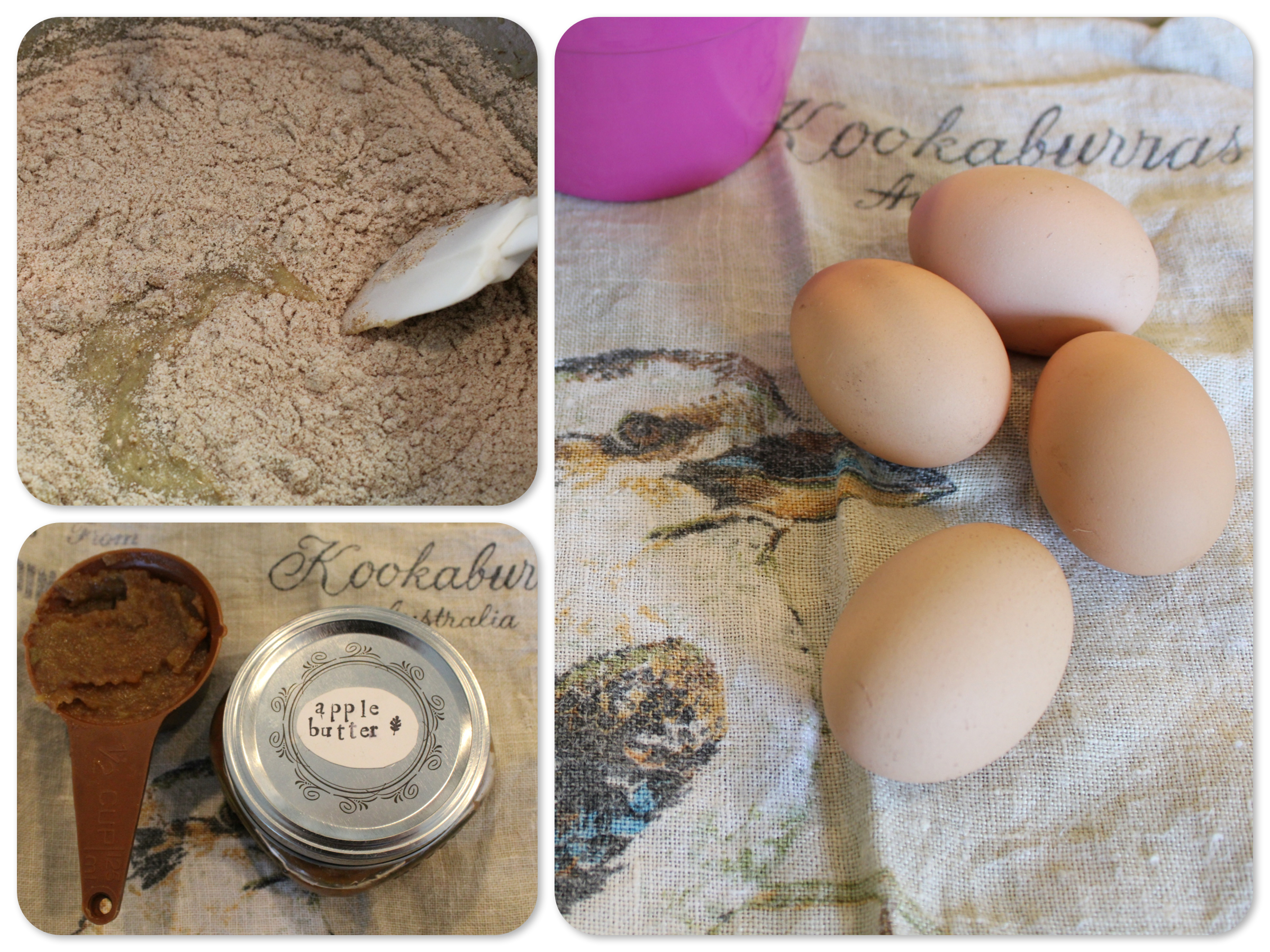 Ingredients 4 bananas (ripe! Frozen works too) 4 eggs (we used ours! Try to get free range) 1/2 cup apple butter or almond butter* 3 tablespoons coconut oil, melted 1 tbsp vanilla 1/2 cup coconut flour 1 1/2 tbsp cinnamon 1 tsp baking soda 1 tsp baking powder pinch of salt 1 cup whole walnuts1. Preheat oven to 350 degrees F. 2. In a mixer or large bowl, blend together bananas, eggs, apple butter/almond butter, coconut oil, vanilla. 3. In a separate bowl, sift together flour, cinnamon, baking soda, baking powder, salt with a whisk or fork. 4. Slowly blend dry ingredients into wets, stirring only until just combined. Don’t add walnuts yet. 5. Grease loaf pan with a little coconut oil and pour in banana mixture until almost full. Sprinkle walnuts ontop of loaf. 6. Bake in preheated oven for45-55 minutes or until wooden skewer comes out clean from centre. (shish kabob skewers work well). 7. Cool loaf in pan for 10 minutes, then scrape a butter knife along the edges of the pan. With oven mitts in hand gently shake pan back and forth to remove it from bottom and sides. Place one oven mitt on top of pan and turn pan upside-down. Loaf should fall out of pan into your oven mitt. Have cooling rack ready, and cool loaf on pan for about 20 minutes. Don’t cut right away to serve or else the loaf will break apart. *I used homemade apple butter in place of almond butter because I didn’t have any almond butter on hand. Apple butter is condensed apple sauce and you can buy it at most grocery stores. The apple butter ended up being a great substitute for the almond butter and made for a lovely moist loaf. Also, I think using the apple helped isolate the walnut as the main nut on the scene! We don’t want no competition Almonds. ;)