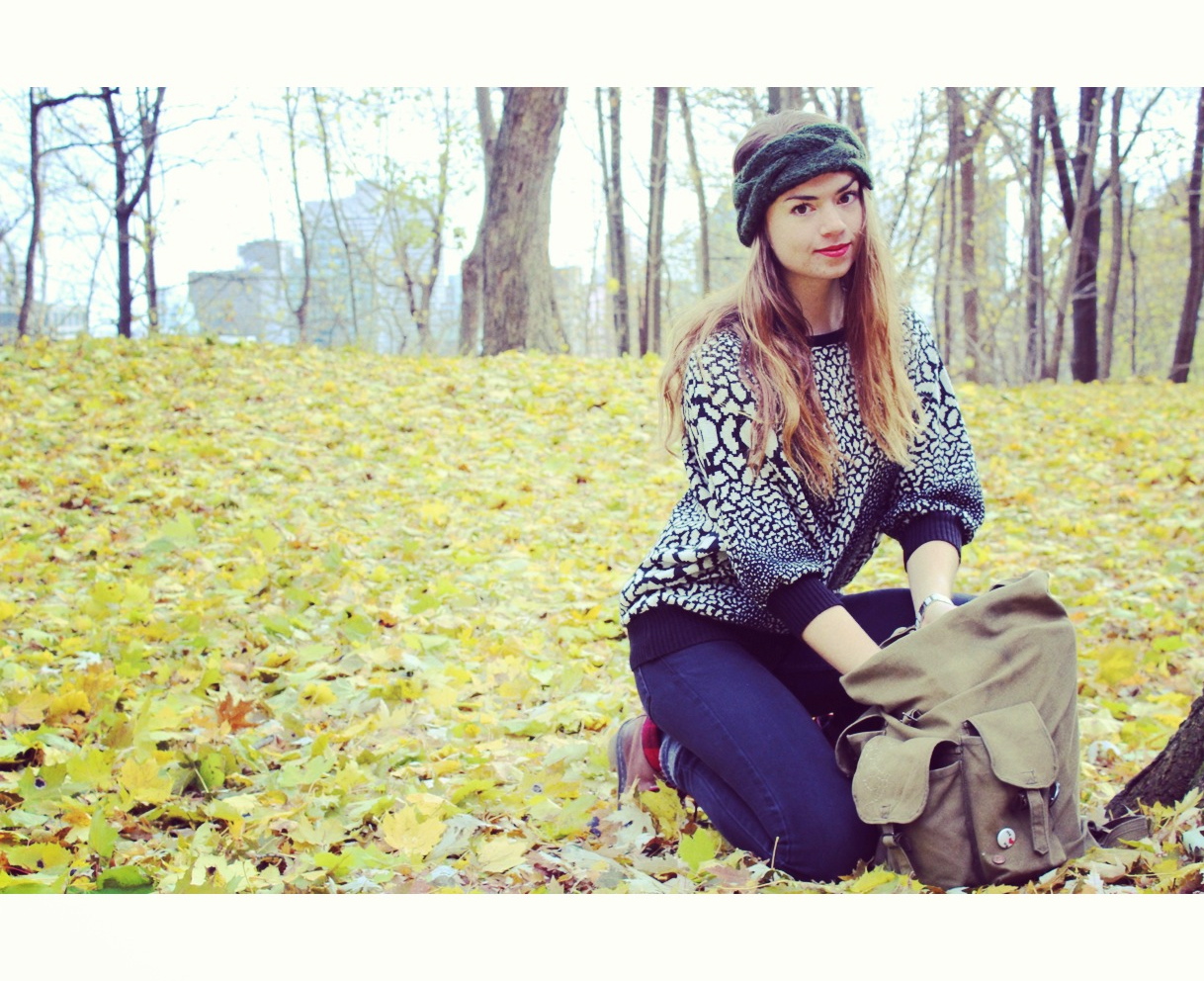 Are you in love with Montreal as well? There’s just so much to appreciate about that city I wouldn’t be surprised if you were too! I can see myself living there– perhaps one day. Last Monday, while checking off item number one on my list (Mount Royal), my sister and I decided to have an impromptu photo shoot amidst a stunning golden blanket of leaves cast down by the mountain’s maple trees, featuring one of my favourite hand-knit items, the Laurel Headband.