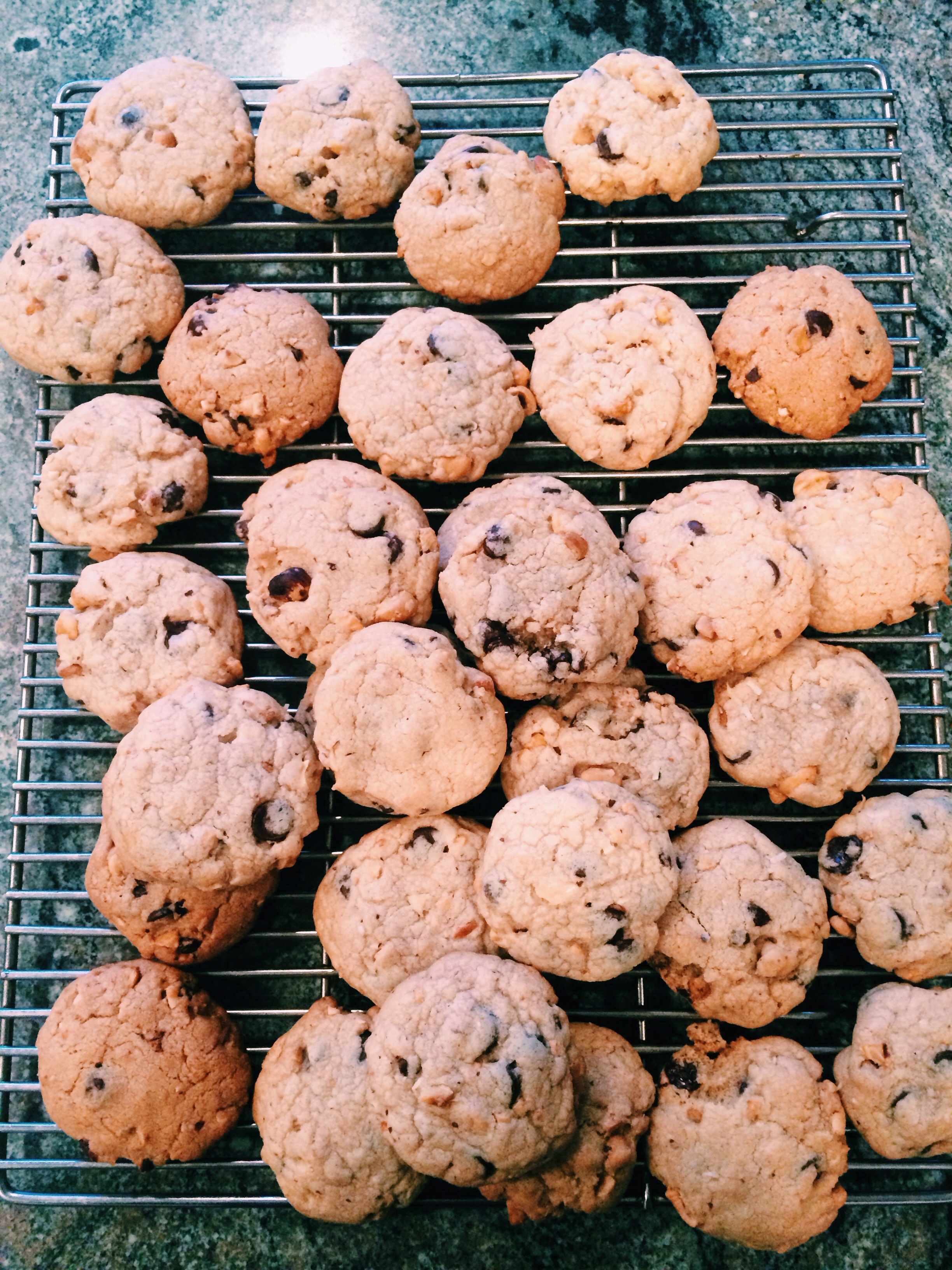 The cookies turn out to be soft, nutty, with a rich chocolatey kick. That’s all wonderful, but do you want to get in on the real secret for why these cookies are so great? You’ve got to roast the nuts before you add them to your cookie batter. It’s all in the subtleties ladies and gentlemen. Mmm mm!