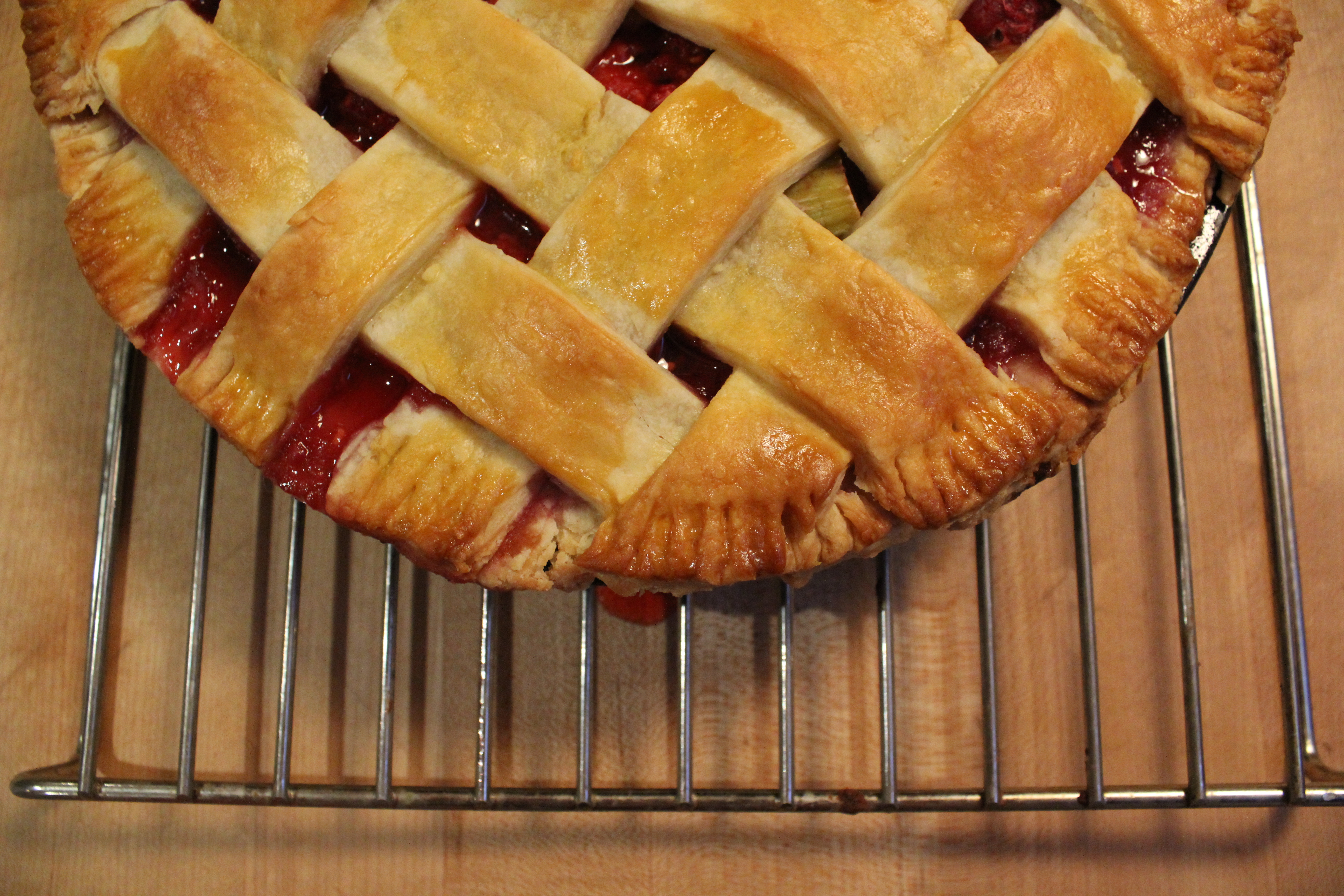 Today’s recipe does not incorporate blackberries, (so apologies for that tangential b-berry rant!), but the recipe calls for the blackberry’s similar, slightly tarter sibling– the raspberry! And that my friends brings us to the introduction of my favourite kind of pie– the raspberry-rhubarb!