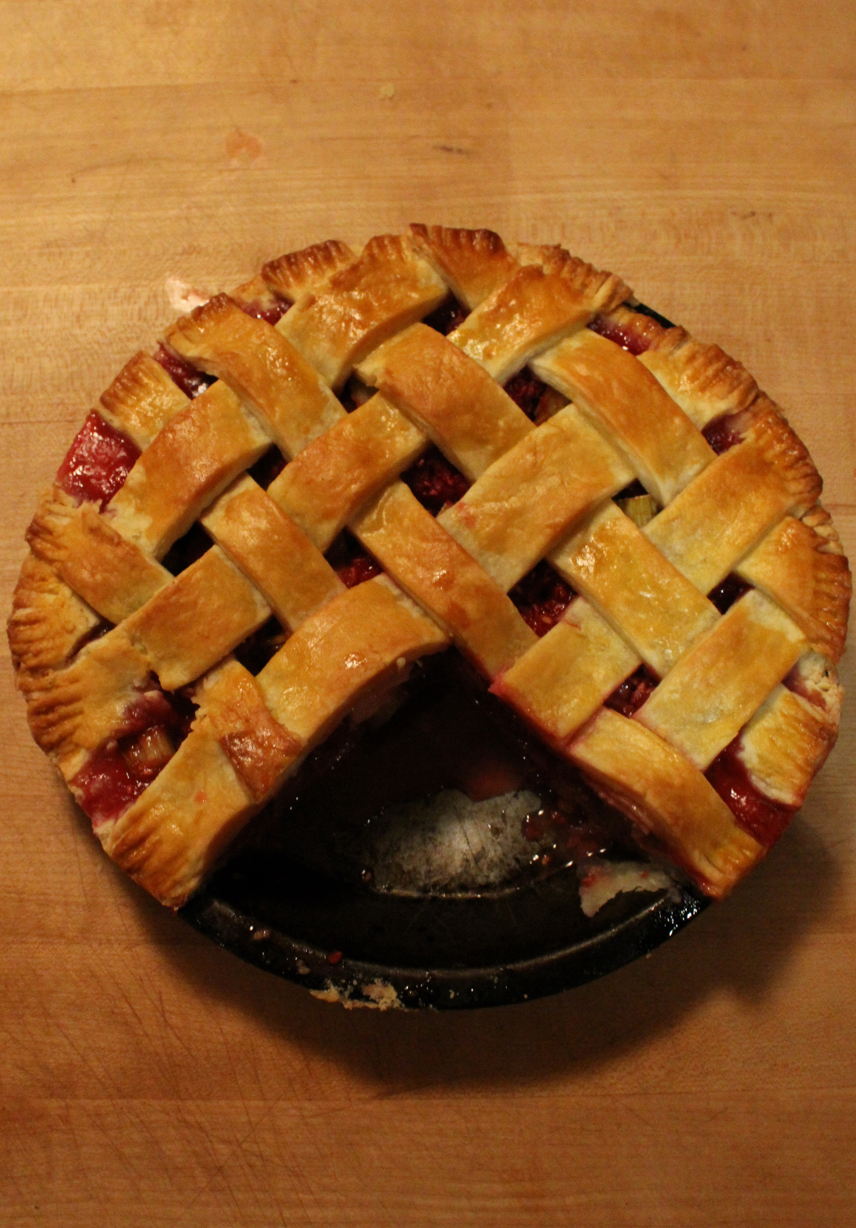I absolutely love the tangy pairing of baked raspberry with rhubarb. I am not a fan of overtly sweet desserts, so this courtship of Rasp-Rhub creates a perfect dessert-time blend. The pie is tart with a natural sweetness, and is encompassed with the flakiest and thickest traditional Australian pastry dough straight from Bourke Street Bakery (remember those chocolate croissants? Same cookbook!) Mmm.