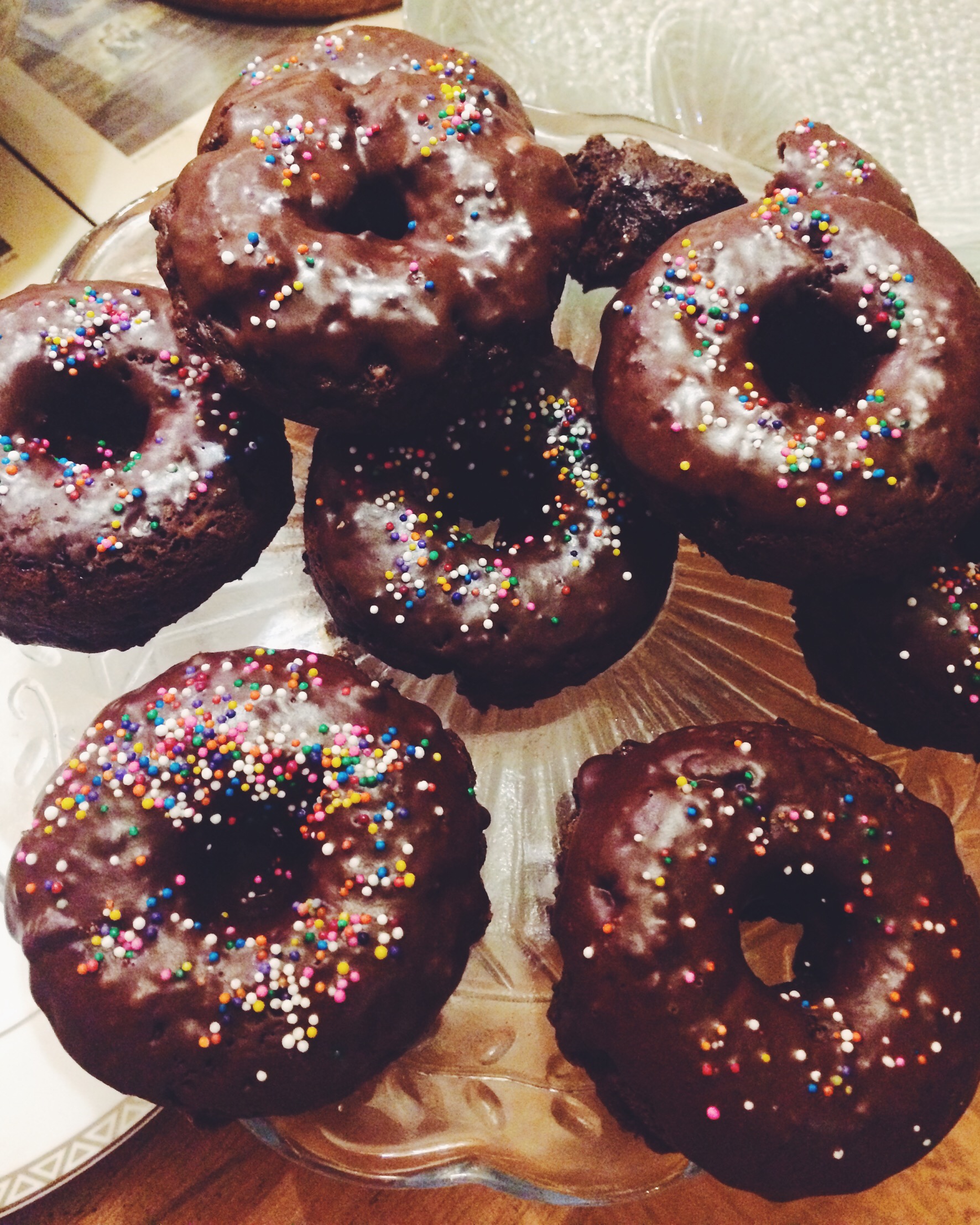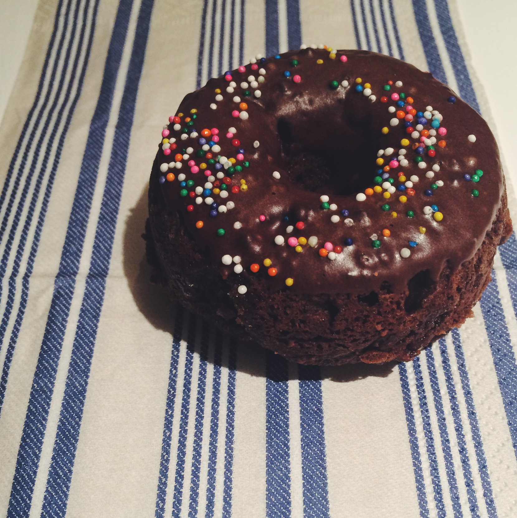 I picked a doughnut recipe for my flashy new pan that was promised to be rich, chocolatey, fudgey and brownie-esque. The doughnuts did not disappoint! Please donut judge my impulsiveness. ;)